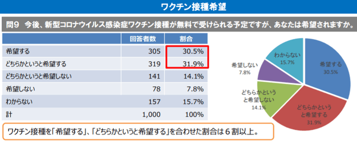大阪府健康医療部発表(2021年1月調査)のアンケート結果を受け、リーブ21の社員は「ワクチン接種日を有給消化」にします。