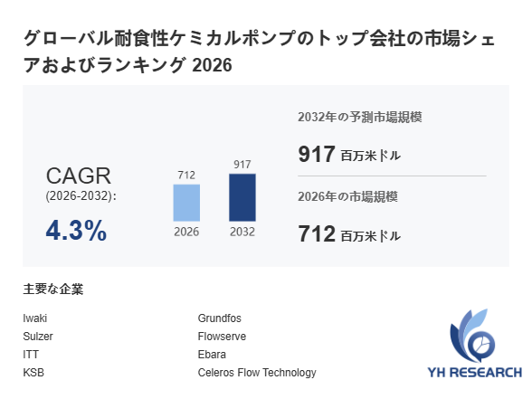 上記の図表/データは、YHResearchの最新レポート「グローバル耐食性ケミカルポンプのトップ会社の市場シェアおよびランキング 2026」から引用されています。