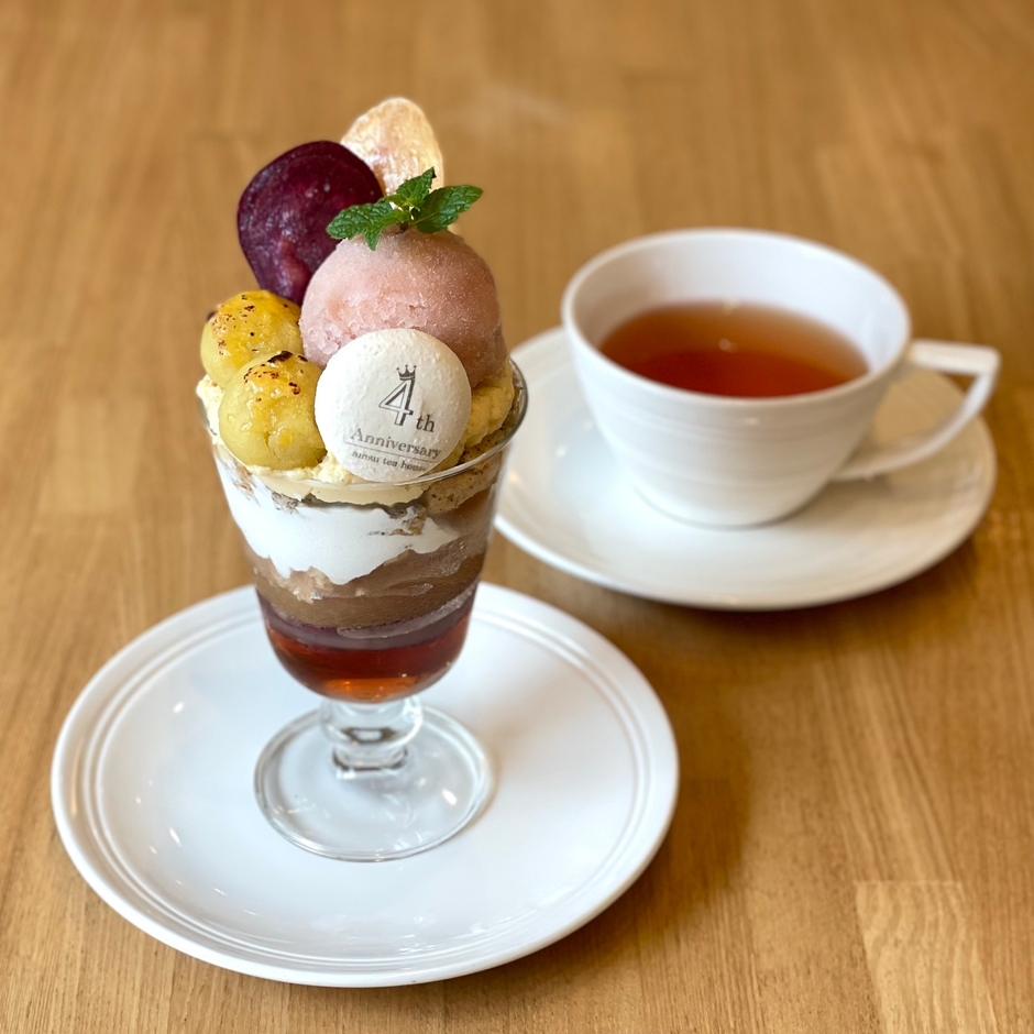 今こうしてお客様に紅茶をご提供できることに、スタッフ一同感謝の気持ちでいっぱいです。 日頃の感謝の気持ちを込めて、4周年を記念し、amsu tea houseでは 「お芋とりんごのパフェ」を11月1日からスタートします。