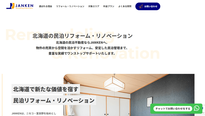 富良野/ニセコ/美瑛の空き家を民泊へリフォーム・リノベーション | JANKEN サービスサイト
