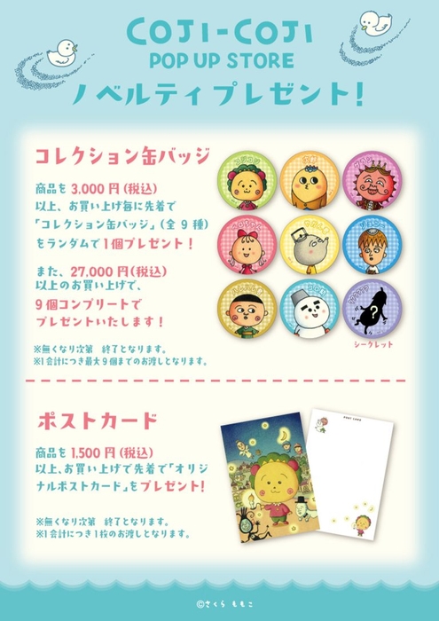 1会計3,000円(税込)以上お買い上げでランダムで1個。27,000円以上(税込)ご購入で全9個(8個+1個)コンプリートでプレゼント! ※1会計につき、最大9個までとなります。