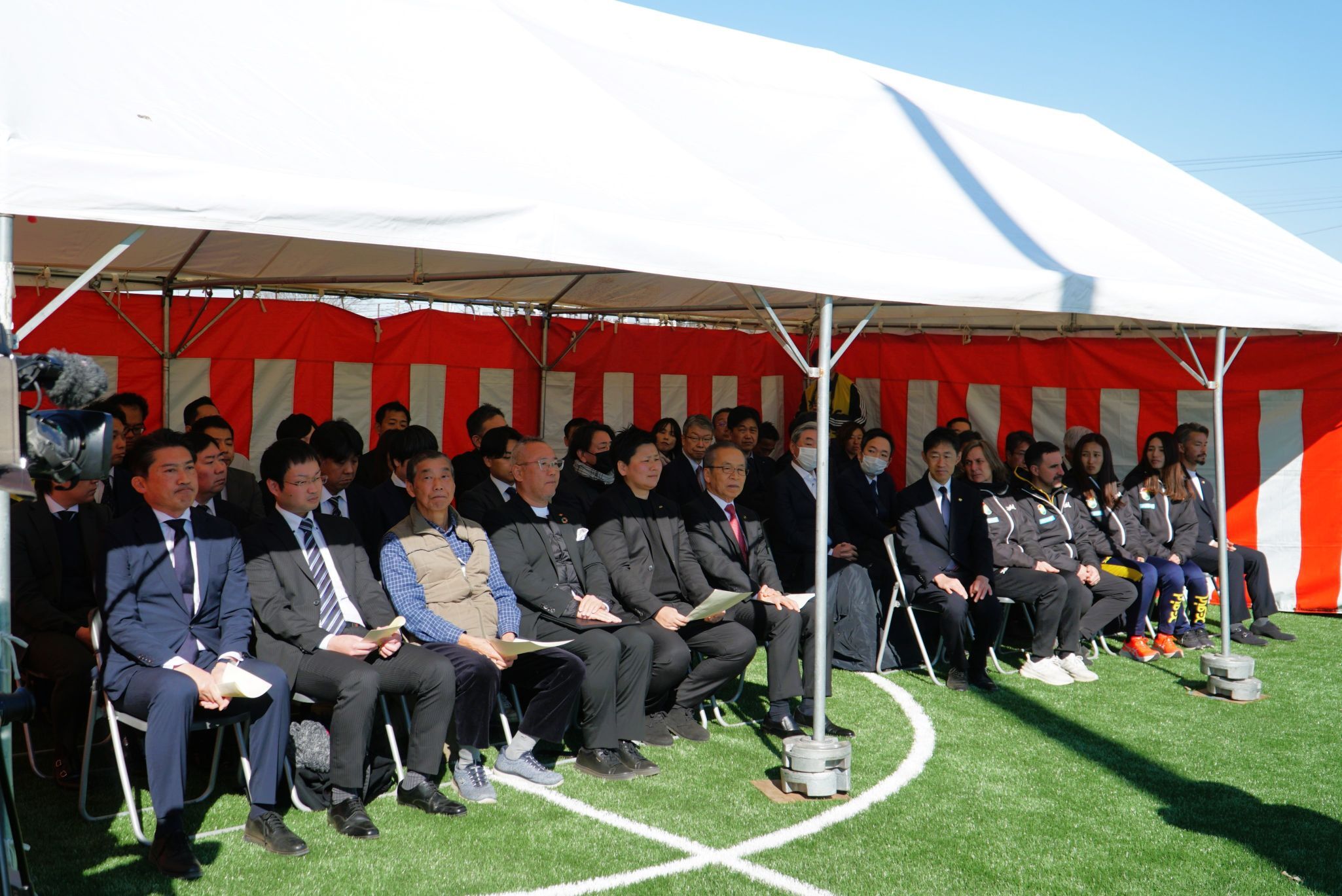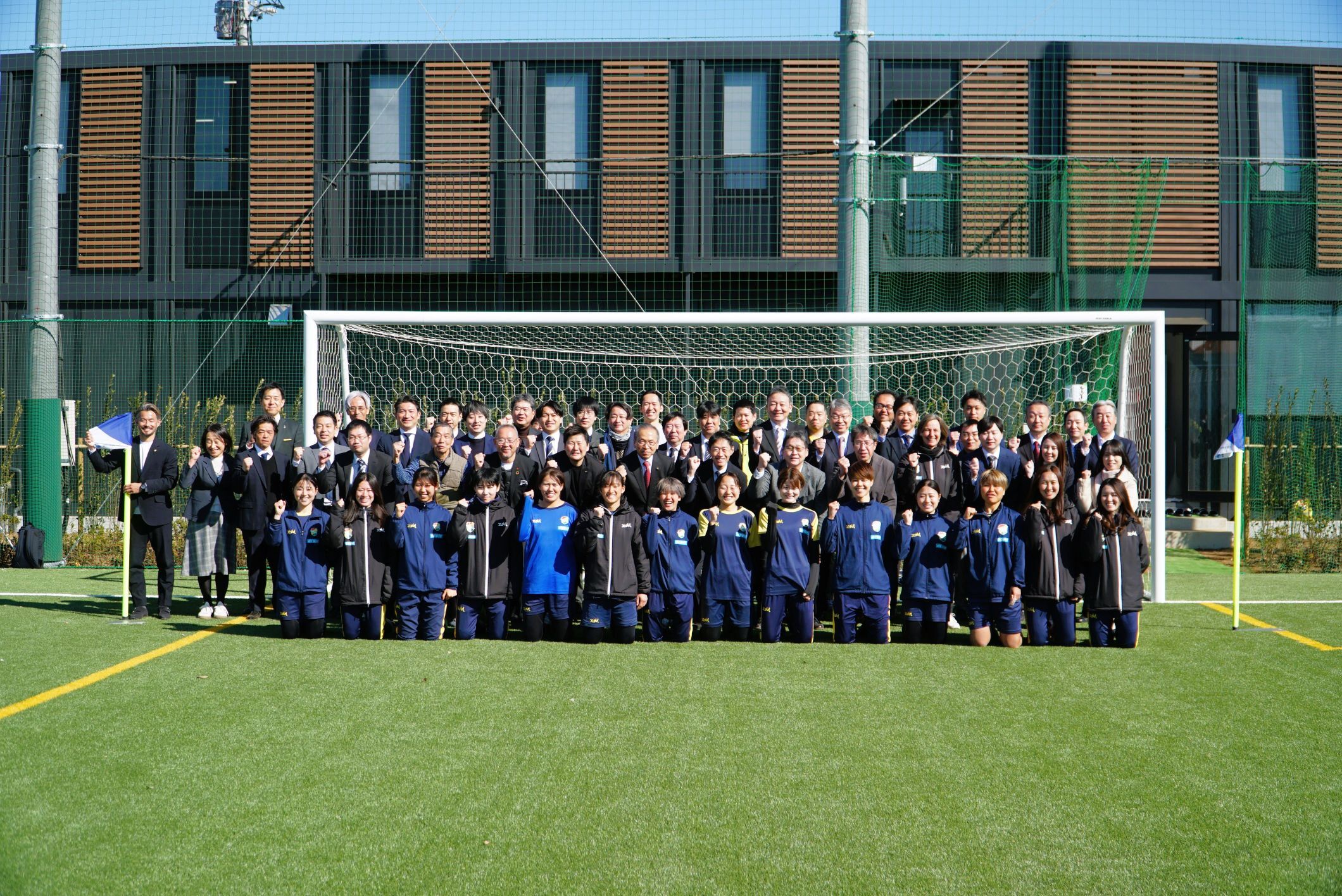 2026年2月1日(日)には、ジェフユナイテッド市原・千葉(ジェフユナイテッド株式会社)の主催により竣工式が執り行われ、当社代表取締役の金子保夫も参列いたしました。また、本施設のネーミングライツ(命名権)を当社が取得し、名称が「オカムラホーム・ジェフユナイテッドパーク船橋」に決定したことを併せてお知らせいたします。