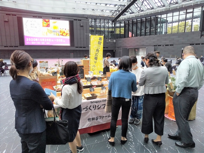 新宿西口の都庁近く、新宿住友ビルのリニューアルされた全天候型イベント広場「三角広場」で開催するマルシェです。