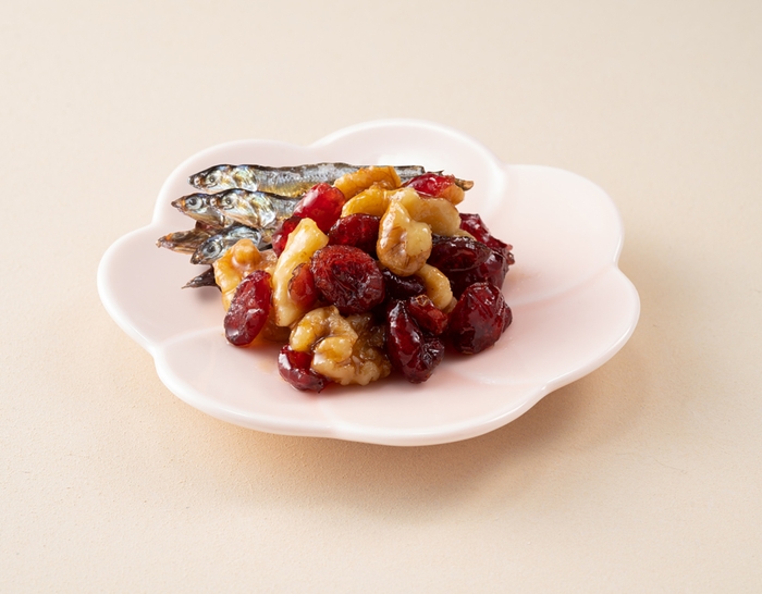 メニュー構成に加え、食べるシーンも想定し、細やかなところにまで気を配ったアイディアが多数出たなかで、最初に取り組んだのは「あわび煮」のカット。最初から切ってあれば、お正月から譲りあうこともなく気持ちよくいただけると、自身の経験を踏まえて通販担当が提案しました。また、ほかのおせちではなかなか味わえないメニューが、ベテラン料理編集者のこだわりとねばりで実現。定番の黒豆は甘すぎないワイン煮に、えびは香草の風味をアクセントに、くるみ田作りにはいっしょに食べると歯ざわりが楽しいクランベリーをプラスと、随所に食べ飽きない工夫をちりばめました。試作を重ねるたびにおいしさがアップ、開発メンバー納得のおせちが完成しました。