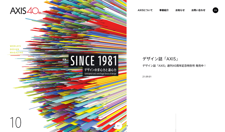 株式会社アクシス(東京都港区、代表取締役社長:朝香 信雄)は、2021年9月23日(木)にビル開業40周年を迎えました。この節目を機に、アクシスのコーポレートサイトを全面リニューアルし、10月より新たなwebサイトの展開を開始いたしました。新しいサイトでは、目的の情報にリーチしやすくするため2つのwebサイトを新設。構成からデザインまで全面的に刷新し、より多くの皆様にアクシスの活動を知っていただけるようにいたしました。