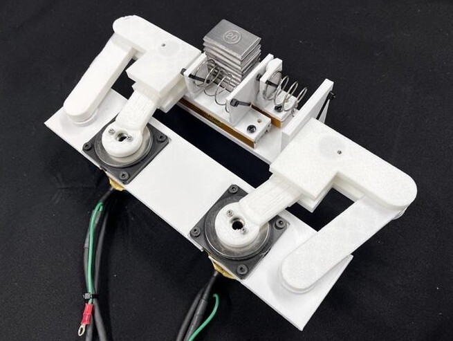 本技術「InSIGHT Grip」は、最小2つのモーターで駆動するコンパクトなロボットグリッパーによって構成されています。通常、物体を壊さずにつかむには高価な力覚センサーが必要ですが、この技術ではモーターの回転数と電流値から力を推定する独自技術(特願2025-135922で出願中)を活用しています。これにより、力覚センサーレスでありながら対象物を優しくつかむ制御と、微細な振動を与える加振制御を同時に行うことが可能となりました。