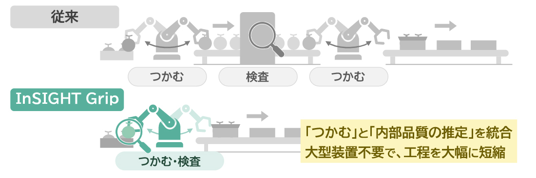 ・ロボットハンドによる「把持」と「内部品質検査」の同時実現で工程を短縮可能に