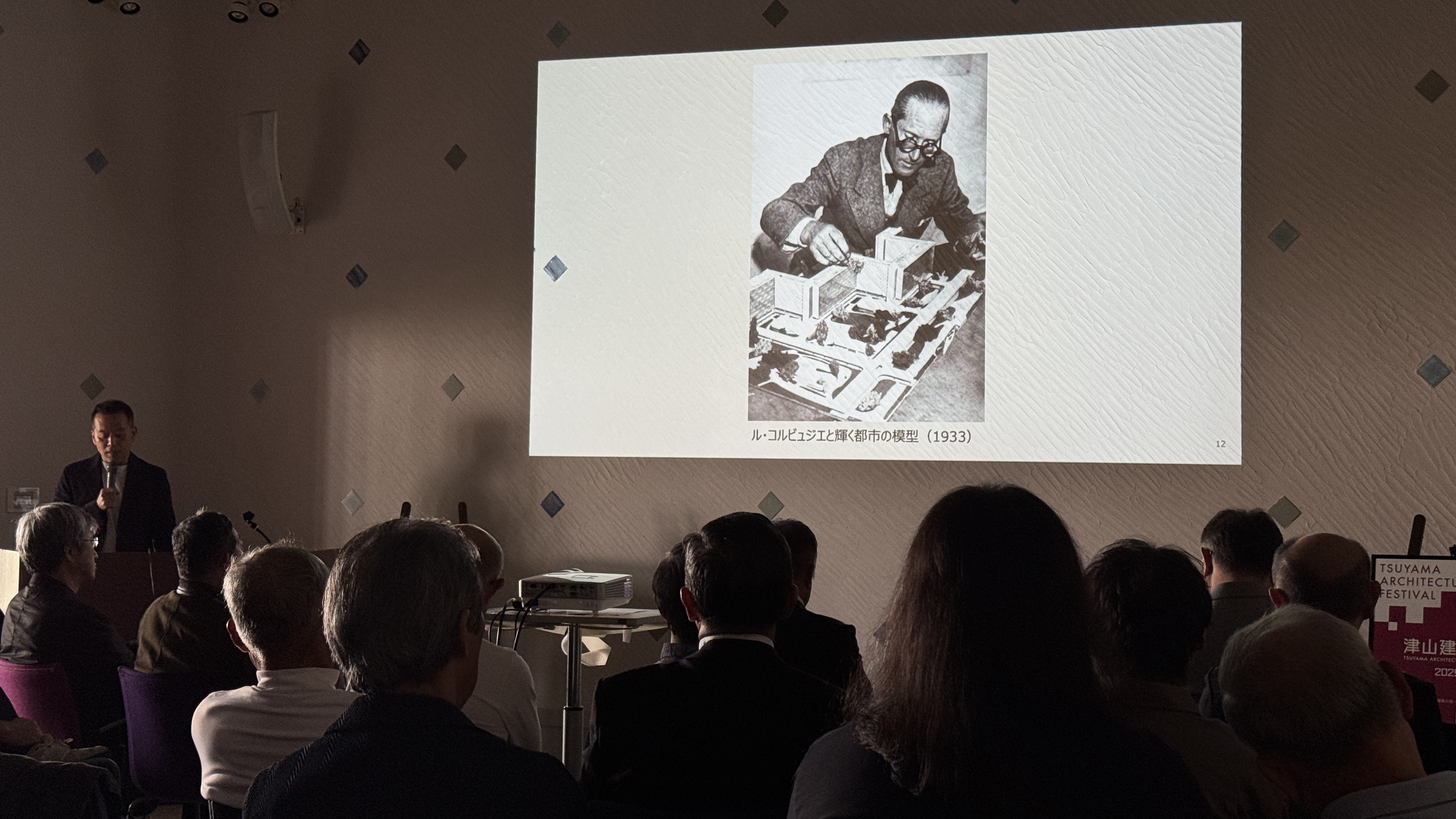 日本最大級の建築公開イベント「生きた建築ミュージアムフェスティバル大阪(イケフェス大阪)」の実行委員も務める倉方俊輔が津山とル・コルビュジエのつながりについて講演しました。ル・コルビュジエの弟子、吉阪隆正は江戸幕府が設立した蕃書調所の主席教授を務め、現在の東京大学の基礎を造った津山藩士・蘭学者、箕作阮甫の子孫で、吉阪隆正に師事した弟子が「津山洋学資料館」を設計しました。