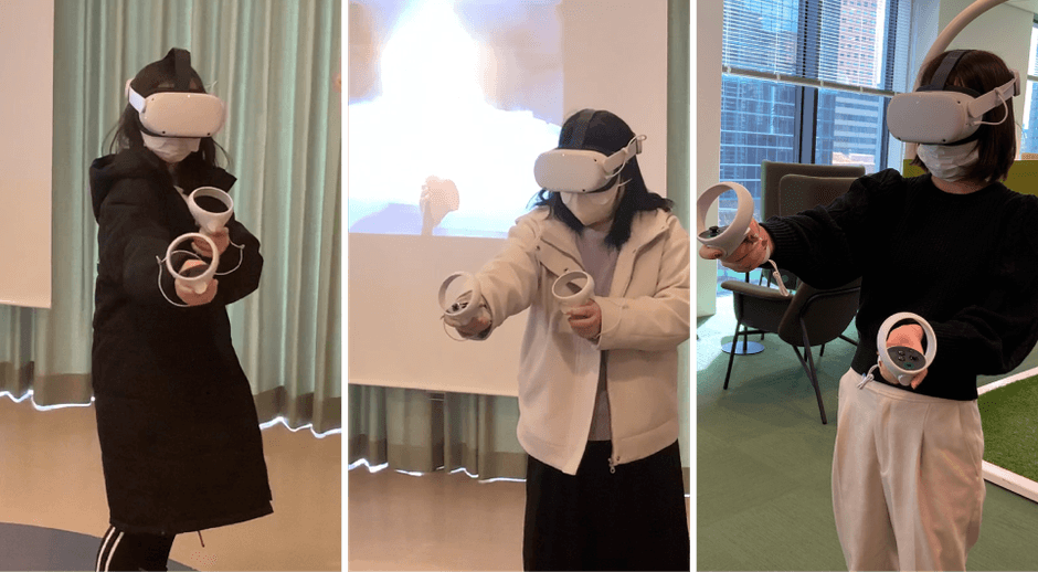 動画を見た後は、コントローラーを使い、VR内で実際に初期消火を行います。