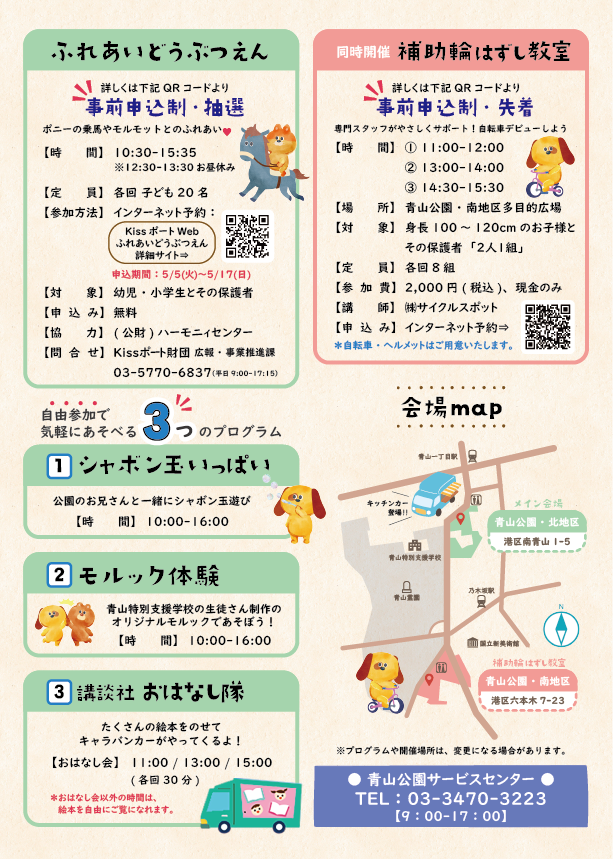 5/30『青山公園キッズフェスタ』を今年も開催!~動物ふれあい・絵本・モルック・自転車教室など“やってみたい!”が集結~
