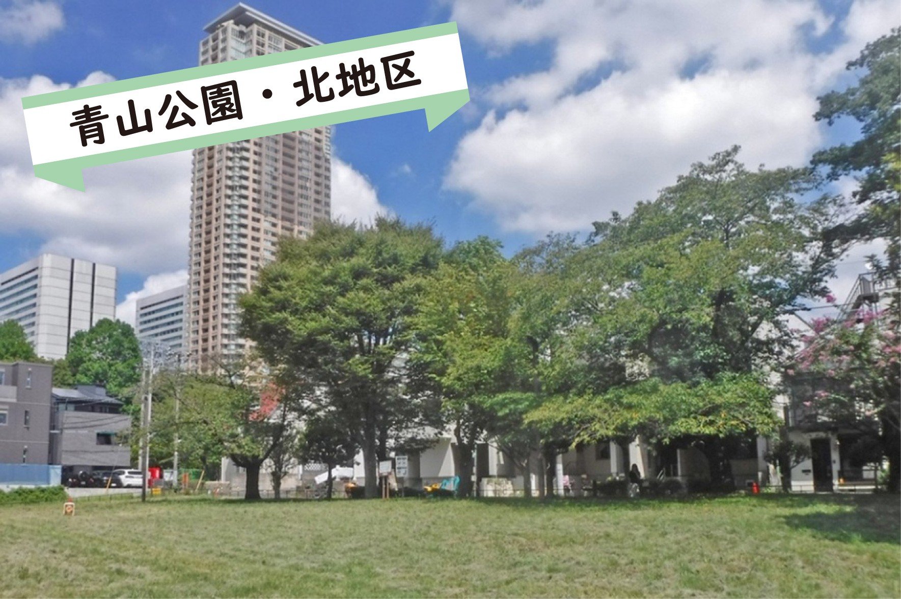 「都心のオアシス」として親しまれている青山公園は、青山霊園の周縁に位置し、赤坂御用地や明治神宮外苑側にある「北地区」と、新国立美術館や六本木ヒルズ側にある「南地区」に分かれています。北地区は、サクラやボランティア花壇などの草花が来園者の目を楽しませ、家族連れも安心して利用できるこども広場や芝生広場があります。南地区には多目的広場があり、様々なイベントやスポーツに利用されています。