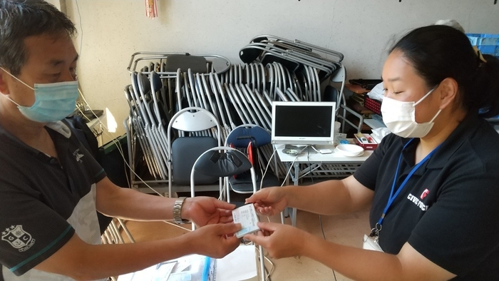 土石流被害の影響で交通手段にお困りの方を対象に、無料のタクシーチケット(1,000 円×6枚/1人)を配布しています。7月21日から浜会館と仲道公民館で、町内会の皆さんらと協力しながら配布を開始。その後、「避難所や岸谷地区でも配付してほしい」との声が寄せられ、さらに4カ所で配付しました。7月27日から8月2日までの利用者数は延べ102人。タクシーの運行に当たっては熱海第一交通(株)と協力しています。