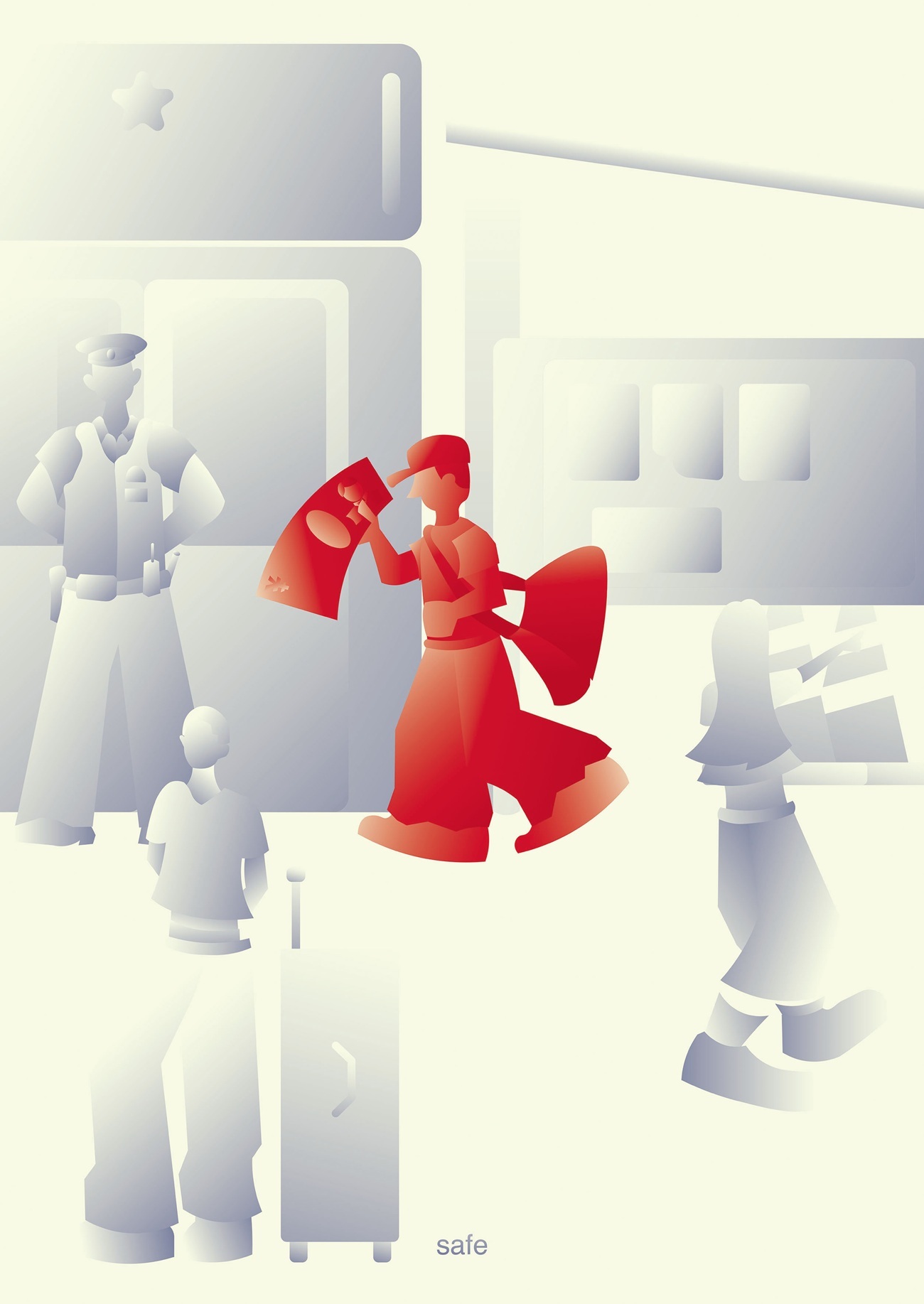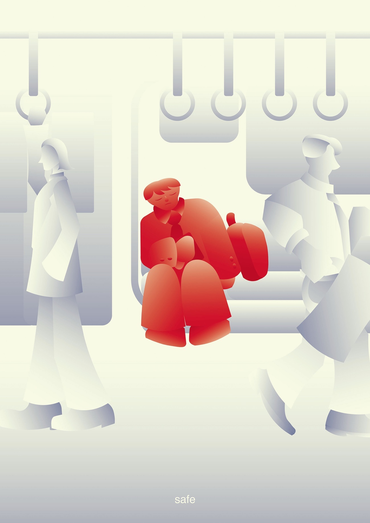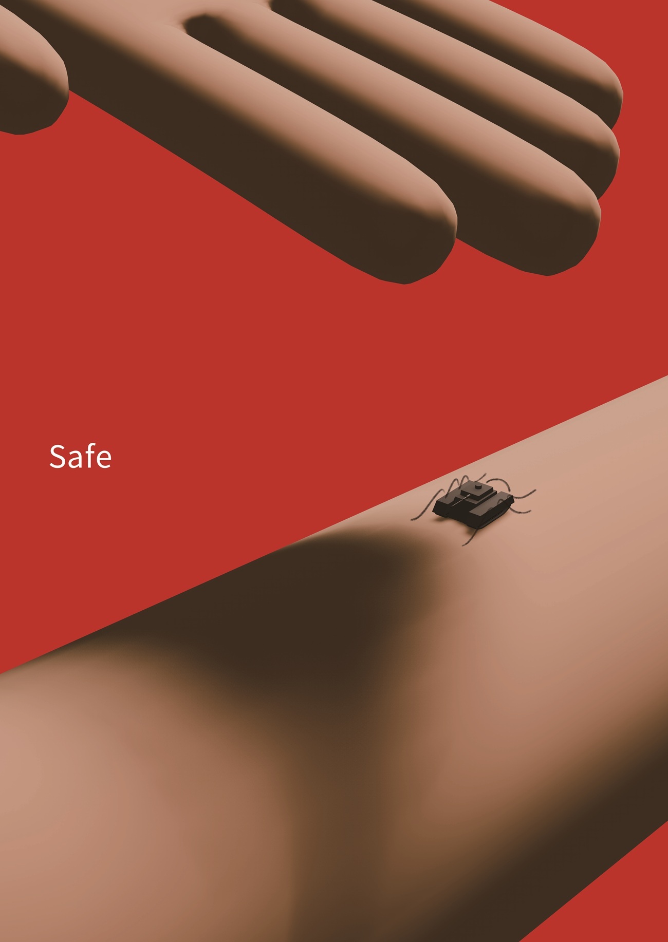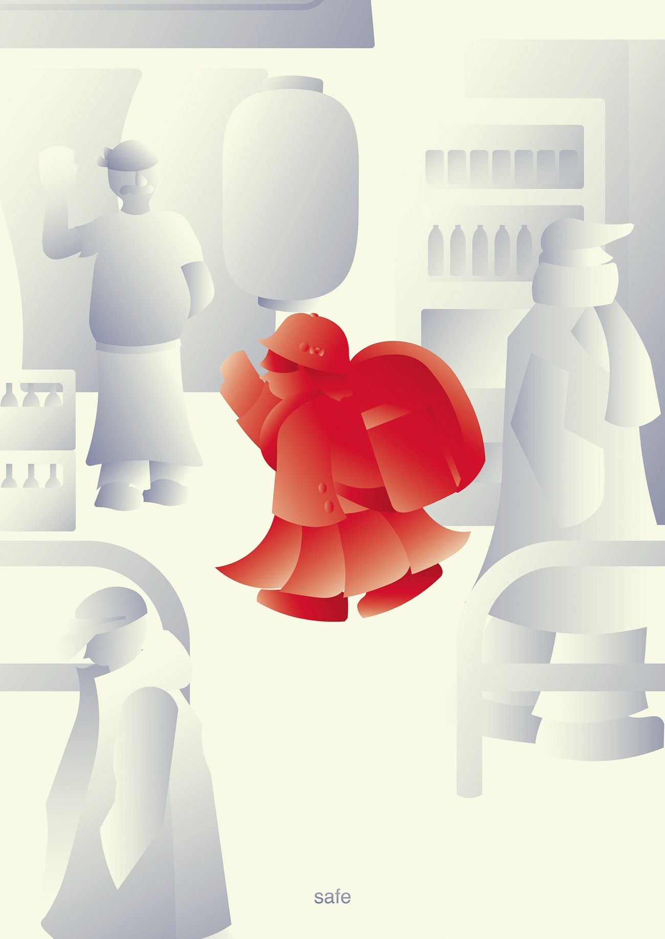 「今回このような賞をいただけたことに、驚きと喜びを感じています。赤い光は暗闇のなかで光り、緊急時周りがよく見えない我々に、安心感をもたらしてくれます。その存在感をモザイクの中の光として描くことで、SAFEを表現しました。」と話します。