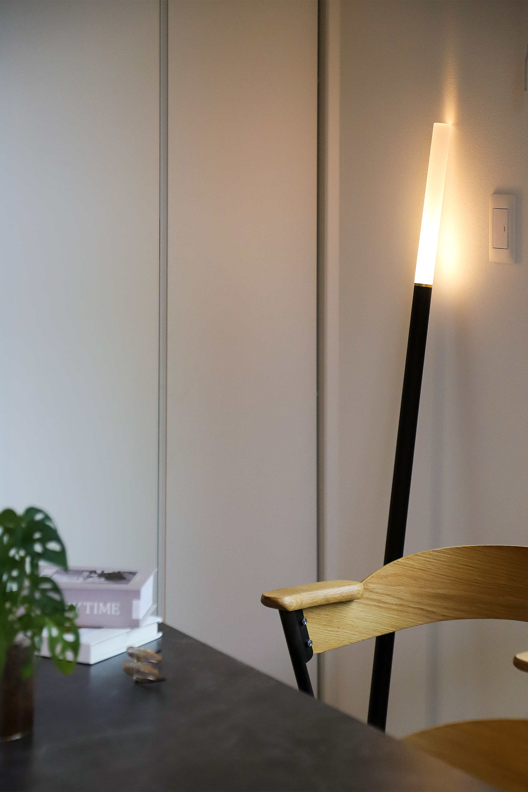 開発のきっかけは、「なぜ、フロアライトは重く、場所を取り、使うのが面倒なのだろう?」というデザイナーの素朴な疑問でした。