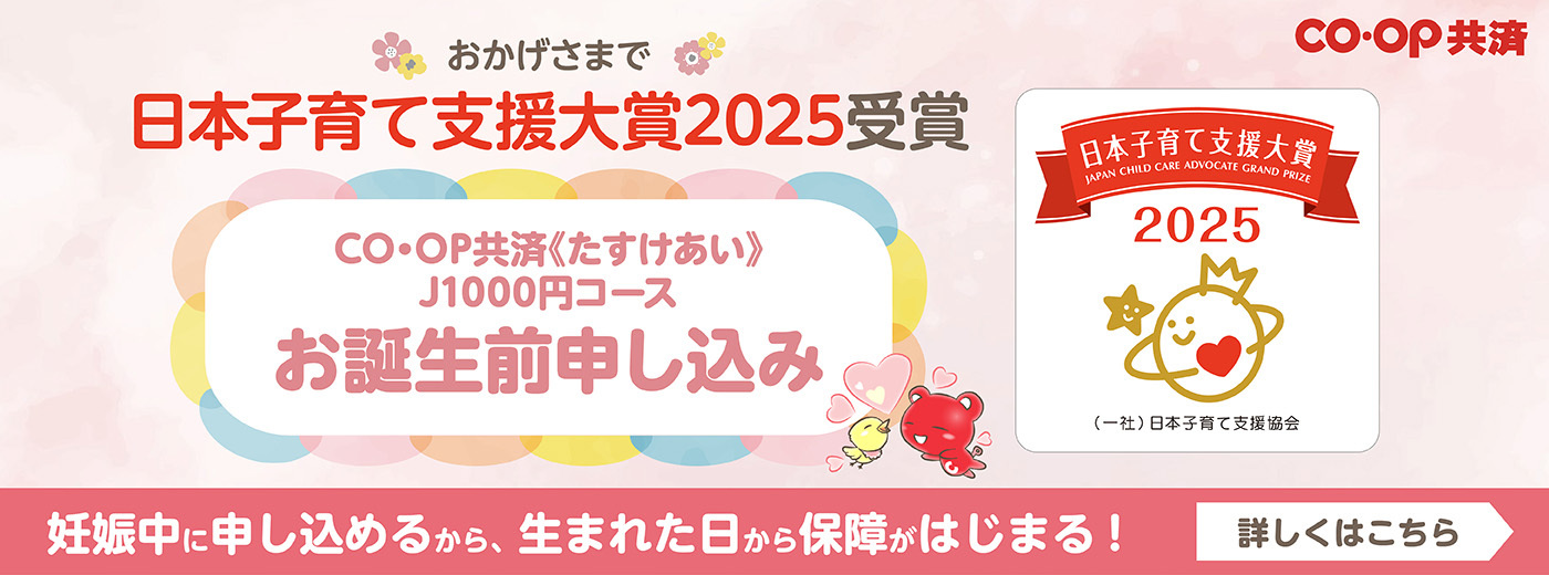 妊娠中から赤ちゃんの保障を申し込むことができる「CO・OP共済《たすけあい》J1000円コース お誕生前申し込み」は、そうした考え方を形にした取り組みの一つです(※)。出産や子育てを迎えるご家庭が、少しでも安心してその時期を迎えられるよう、妊娠期から「もしも」に備える仕組みとして展開しています。