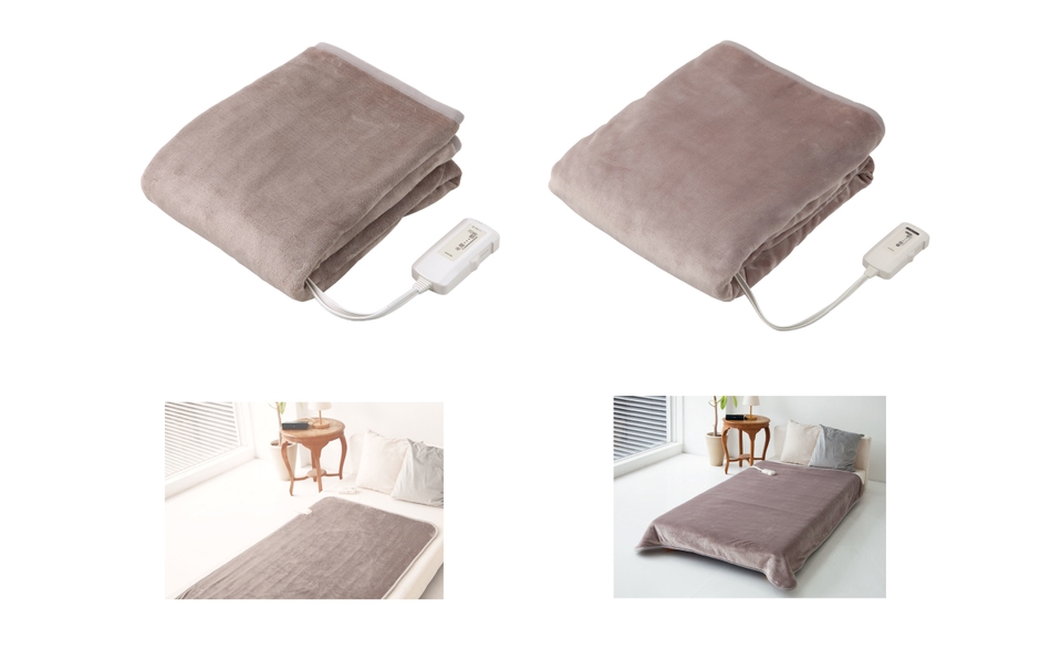 サイズは敷毛布(KDS-5007M)が約140×80cm、掛敷毛布(KDK-7507M)が約188×130cm。デザインは上品でシンプルなグレージュカラー、心地良い肌ざわりの電気毛布です。あたたかくて幸せ、かわいくて嬉しい、体を心地良く、やさしく包んで癒してくれるあったかアイテムとして発売致しました。