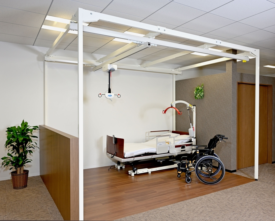 免荷リフト(電動)でリモコン操作により安定した移動が可能で、スムーズな移動により介助者の身体的負担を軽減できます。