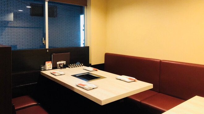 焼肉の匂いも気にならない、無煙ロースターを囲んで極上の焼き肉を堪能できますよ。