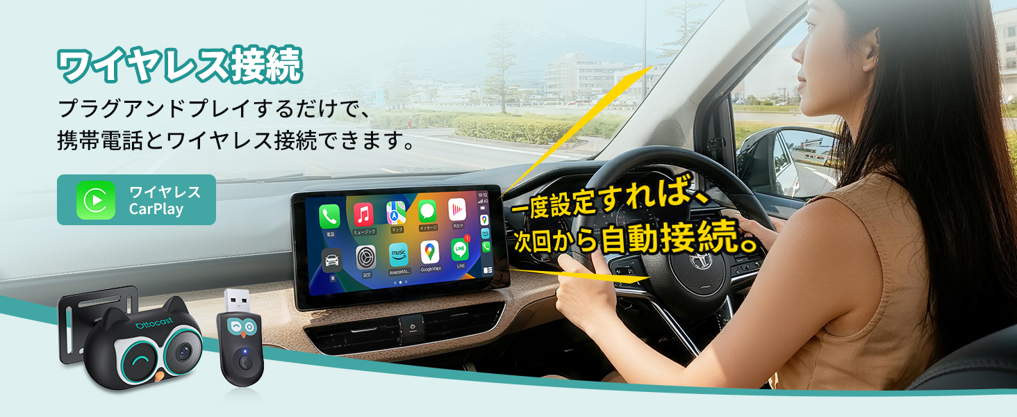 【オットキャスト最新】見守りカメラ《Cabin Care》新発売 見守りカメラ × 有線CarPlayワイヤレス化 後部座席の「見えない不安」を、1台で解決。