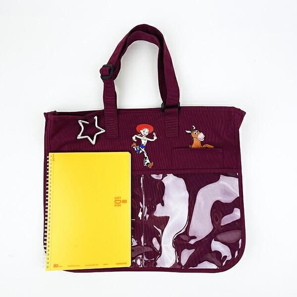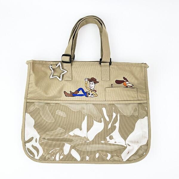 ウッディとスリンキー・ドッグの仲良しコンビはベージュカラーです。全面の透明PVCポケットにこの色、汚れにくさの極み!ヘビロテする方やマザーズバッグとして砂場遊びに持って行く方などにとっても嬉しいデザインですよ。