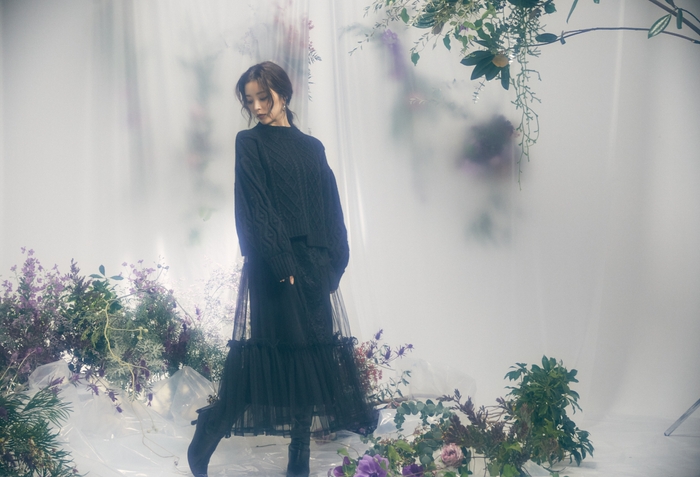 どこかほのかに少女性を残しながらも、ミステリアスで自立した女性を表現した「ダーク&スイート」なコレクションでは、イメージモデルとして本人が登場。