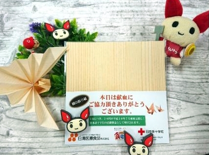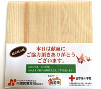 2月10日(水)から12日(金)に47都道府県の献血会場で 支援つきノベルティー(木の折り紙)を配布