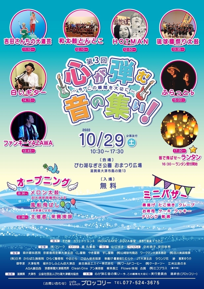 音楽イベント「心が弾む音の集い~今、この瞬間を大切に~」を 琵琶湖なぎさ公園おまつり広場にて10/29開催!