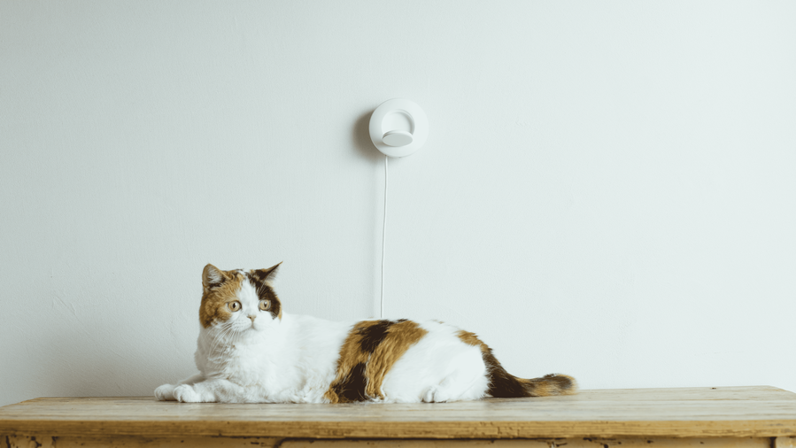 デバイスは、猫に威圧感を与えず、部屋のインテリアにも馴染みやすい、円形のやさしいデザインが魅力です。壁や棚、ケージの上など設置場所も自由度が高く、季節や気分でお気に入りの場所が変わっても簡単に移動できます。猫の安静時の呼吸数は健康状態を知る重要な指標ですが、動物病院では緊張して正確に測れないことも多いものです。自宅でリラックスした状態の呼吸数を継続的に計測できることをneamoは重視しています。