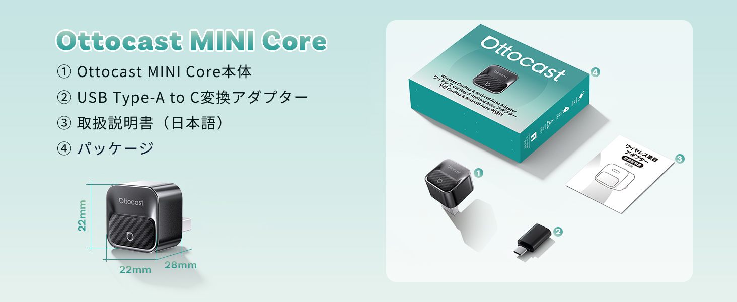 さらに小型化!挿すだけでCarPlay・Android Autoを ワイヤレス化する「OTTCAST Mini Core」登場| 新商品発売特典、40%オフで今すぐゲット!