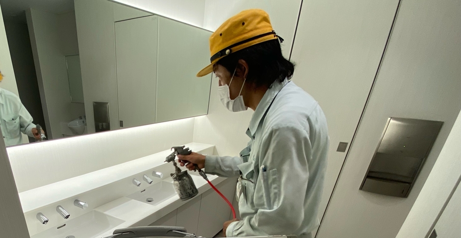 定期的な巡回消毒については、新型コロナウイルスへの効果が認められている界面活性剤に、今回のコーティング剤の成分を配合した薬剤を使用して継続します。消毒を行いながら、抗ウイルス・抗菌効果を持続させます。
