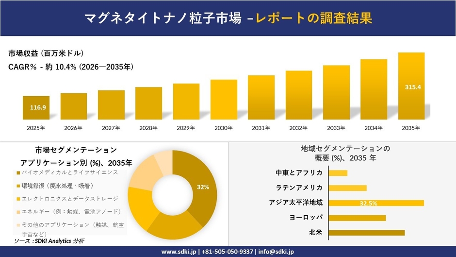 提出日 (2026年03月09)、SDKI Analytics(本社:渋谷区、東京都)は、2026年と2035年の予測期間を対象とした「マグネタイトナノ粒子市場」に関する調査を実施しました。