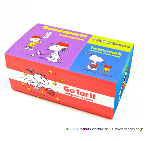 「スヌーピー30枚入BOXマスク」はスヌーピーたちがスポーツを楽しむ「PEANUTS SPORTS」のポップでキュートなデザインです。部屋の中でもパッと華やかな印象を残し、インテリアとしてもご活用いただけます。箱は引出タイプになっており、マスクを取り出す度に、内箱にデザインされたスヌーピーをお楽しみいただけます。マスクは持ち運びに便利な個別包装となっています。