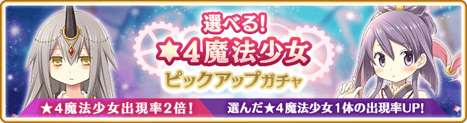 『選べる★4魔法少女ピックアップガチャ』ではピックアップ対象として、★4魔法少女から1体を選択できます。
