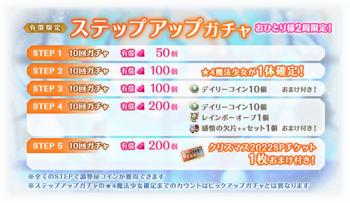有償限定 ステップアップガチャ クリスマス魔法少女2022編
