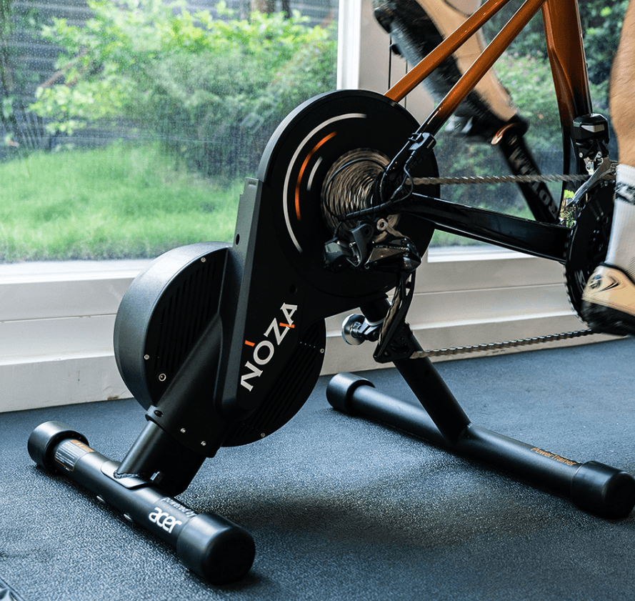 自転車用スマートトレーナー「NOZA S」は業界最高クラスの静穏性とレスポンス、正確性を兼ね備えたダイレクトドライブトレーナーです。スポーツ用自転車の後輪を外し、スマートトレーナーに取り付けることで、実際の走行に似た感覚でトレーニングを行うことができます。