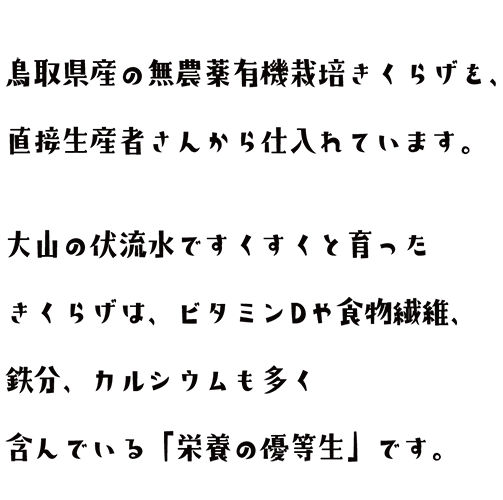 鳥取県産きくらげ、大山どり、砂丘らっきょうなど、鳥取出身の店主の故郷の素材も自慢の一つです。