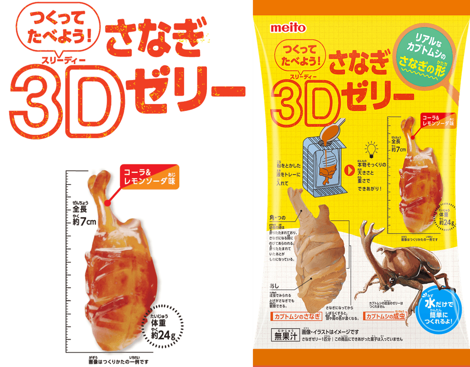 昨年発売し話題となった「つくってたべよう!幼虫3Dゼリー」のシリーズ第2弾の商品となります。