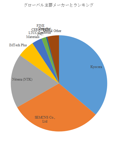 LP Informationのトップ企業研究センターによると、プローブカード用セラミック基板市場は、Kyocera、SEMCNS Co., Ltd、Niterra (NTK)などのグローバル企業が中心である。2024年にはトップ3企業が売上ベースで約85.0%の市場シェアを占めており、市場は高度に集中している。これら企業は、耐熱性、絶縁性、微細配線対応の精密加工技術を強化し、高密度・微細化する半導体ウエハーのテストニーズに応えている。また、製造プロセスの信頼性向上やテスト精度改善に注力することで、世界市場での競争優位性を維持している。