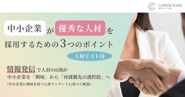駐在妻に特化した人材支援事業「CAREER MARK」が、「中小企業が優秀な人材を採用するための3つのポイント」を解説したホワイトペーパーを無料公開しました。駐在帯同や子育てで離職した経験を持つキャリアコンサルタントがキャリア相談やセミナーを実施します!