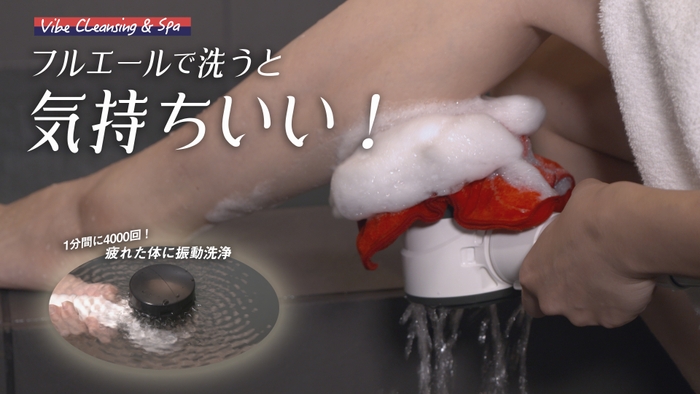 洗浄中も振動が気持ちよく、タオルやスポンジでゴシゴシから進化した洗い方改革です。電気駆動ではなく、流水駆動のバイブ スパ構造