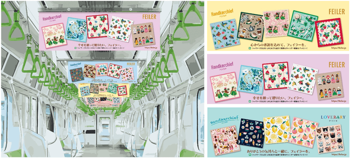 フェイラーがギフトシーズンに伝えたいあなたの気持ちを応援! JR山手線に“幸せのハンカチ”車両が出現! ドイツの人気ブランド・フェイラーのカラフルなハンカチが中づりをジャック!