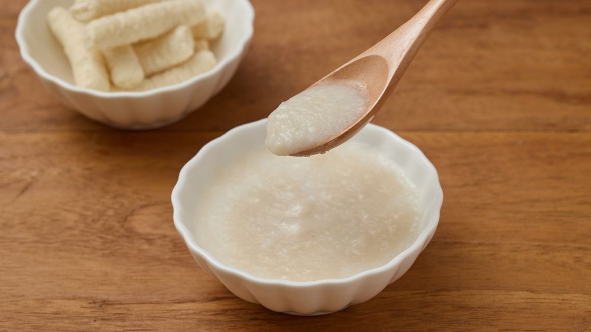 〈ポイント4:お湯をかけると即席おかゆに早変わり〉