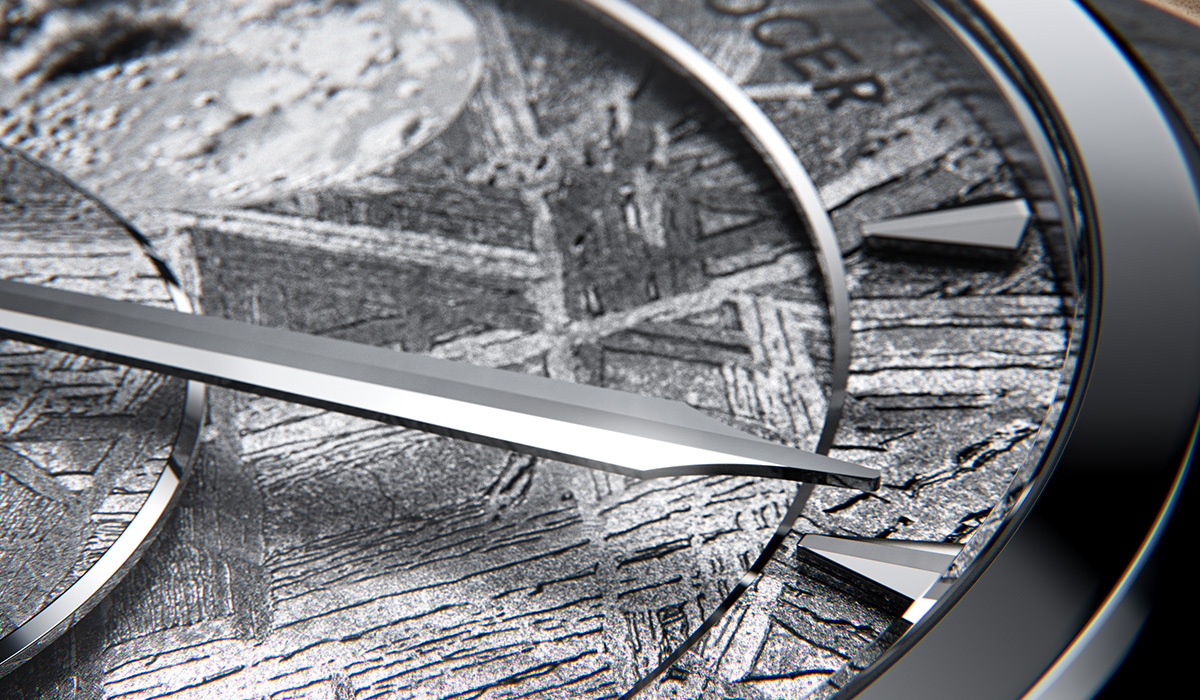 宇宙空間で形成された隕石は、人類の歴史をはるかに超える時間を内包する素材です。その隕石を削り出し、月の運行を表示するムーンフェイズ機構と組み合わせることで、単なる装飾品ではなく“時間のロマンを身に着ける体験”を形にしました。