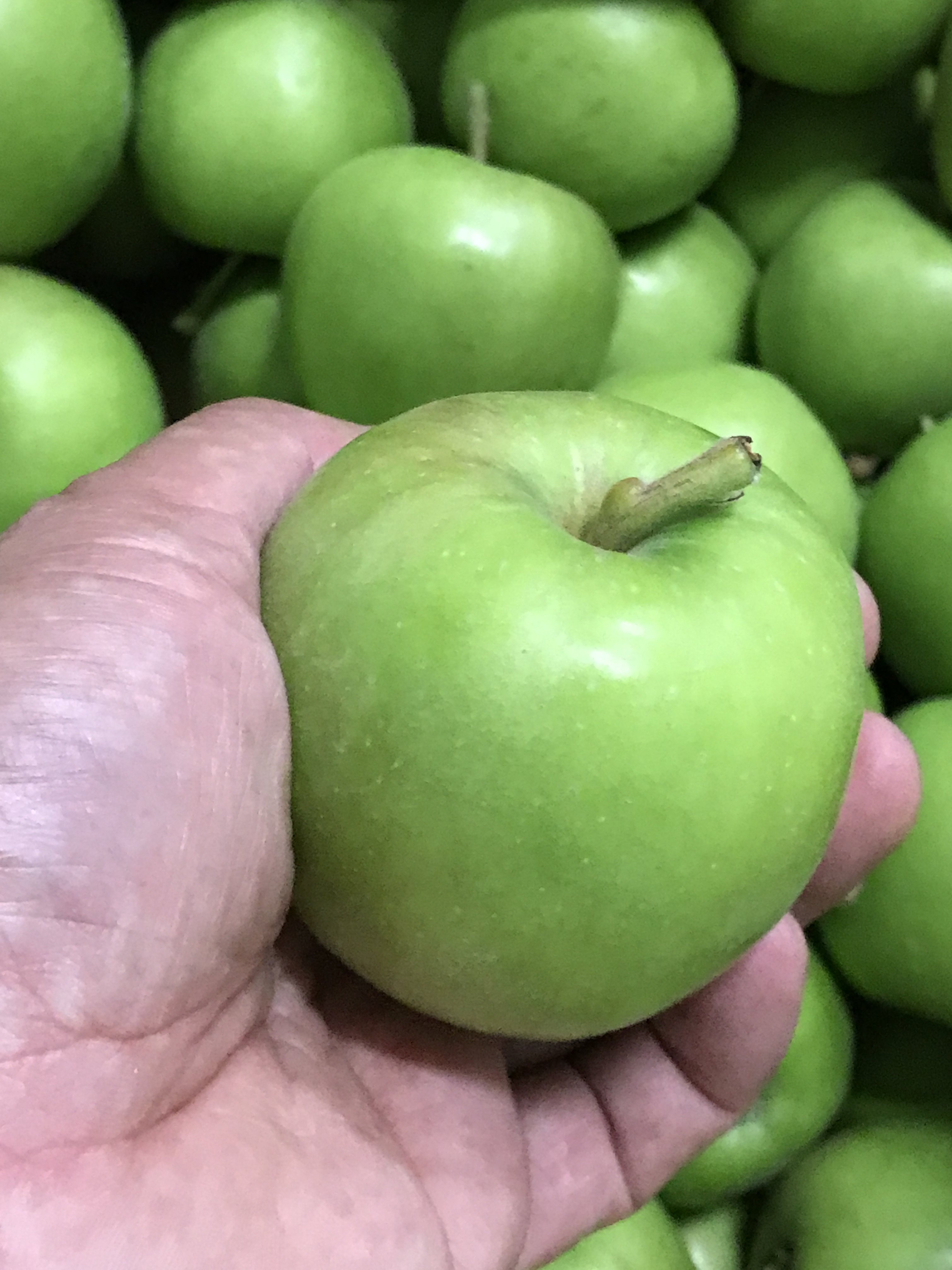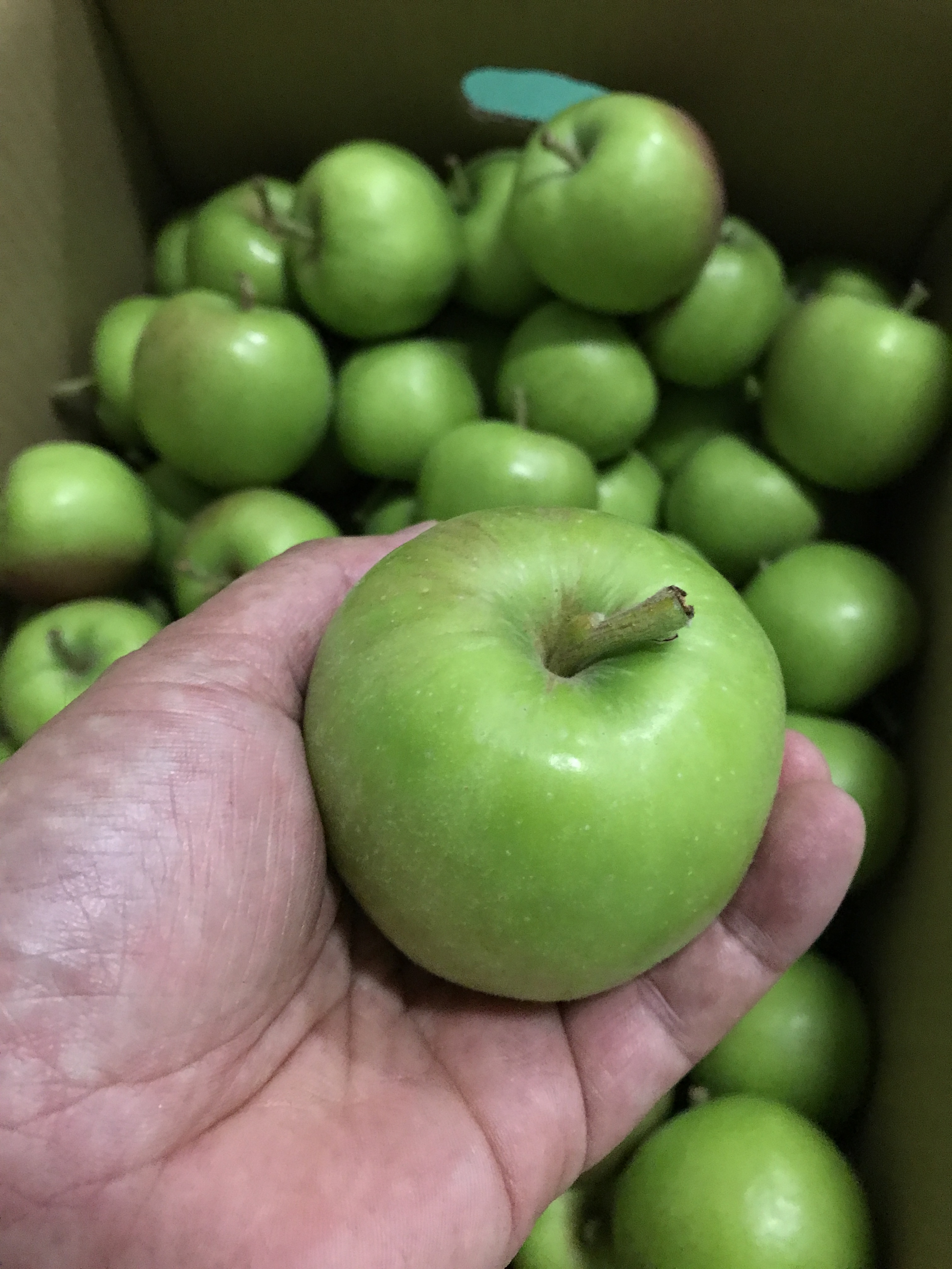 そのため、摘果は果樹栽培において重要な作業であり、段階的に行われますが、仕上げ摘果と呼ばれる作業後半は、握りこぶしほどの大きさに成長します。そんな大きな摘果リンゴは、誰もが「もったいない」と思っていても農薬問題から食用利用できず、そのまま放棄されてきました。生産者にとっては作業の邪魔になるだけで、問題や悩みの種となっていました。