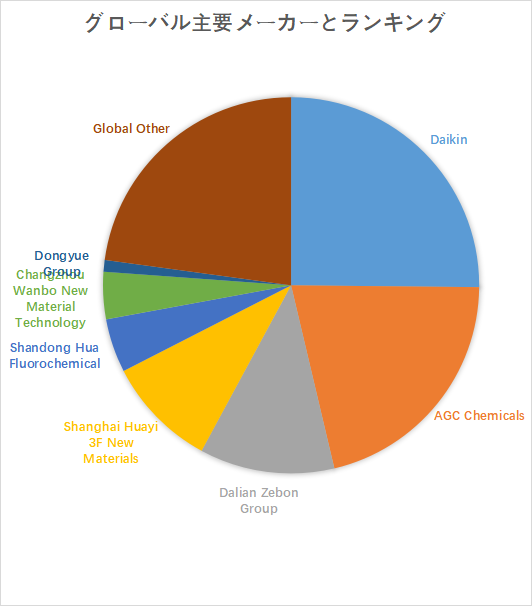 LP Informationのトップ企業研究センターによると、フッ素エチレンビニルエーテル(FEVE)樹脂の世界的な主要製造業者には、Daikin、AGC Chemicals、Dalian Zebon Groupなどが含まれる。2024年におけるトップ3企業の市場シェアは約58%であり、業界集中度は中程度である。Daikinは高耐候性・長寿命塗料向け樹脂の研究開発に注力し、塗料メーカーとの協業を通じて用途開発を拡大している。AGC Chemicalsは建材・外装用途向け製品ラインを強化し、施工性改善と環境適応性を両立させる戦略を実施する。Dalian Zebon Groupは中国市場を中心に供給網を拡大し、地域密着型製品供給とカスタマイズ対応を進める。これらの企業は技術革新と市場対応力を武器に、グローバルFEVE樹脂市場での優位性を確立している。