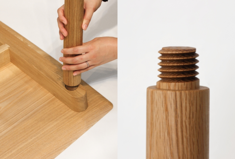 ネジ式という新たな工法と、現代の暮らしにあわせた設計。そして軽やかさの中に上品さをまとった意匠。こだわりがつまったテーブルです。