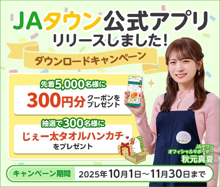 JA全農が運営する産地直送通販サイト「JAタウン」は、「JAタウン公式アプリ」をリリースしました。この公式アプリでは、お得なクーポンや旬の商品、お得なキャンペーンのお知らせを配信します。また、簡単に商品を検索してお買い物ができます。
