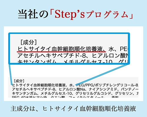 『 Step's プログラム』の結果へのこだわり 『 ヒトサイタイ血幹細胞順化培養液』