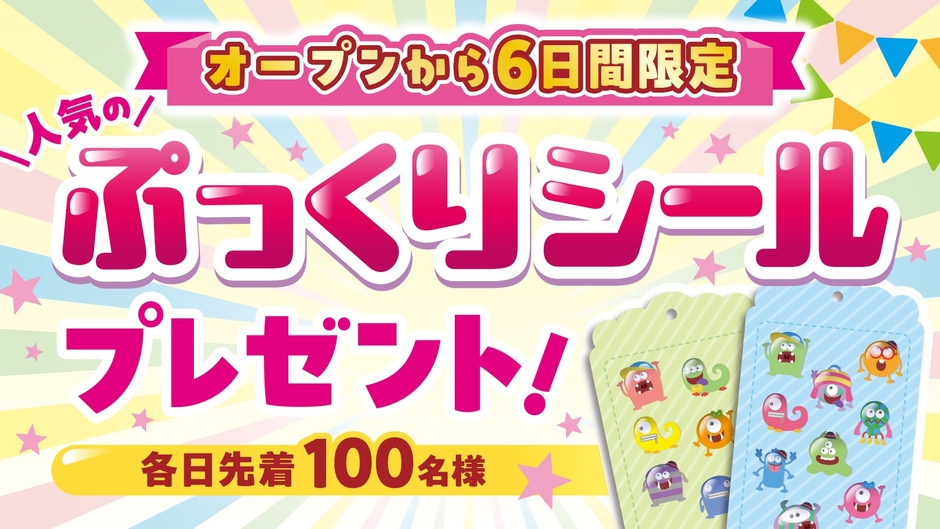 リニューアルオープンを記念して、3月6日(金)~11日(水)の6日間限定で、各日先着100名様を対象に、人気の「ぷっくりシール」をプレゼント!