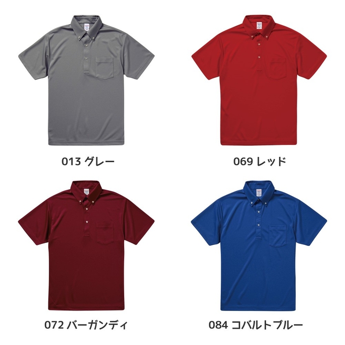 「 4.1オンス ドライアスレチック ポロシャツ (ボタンダウン)(ポケット付)(両面プリント) 」